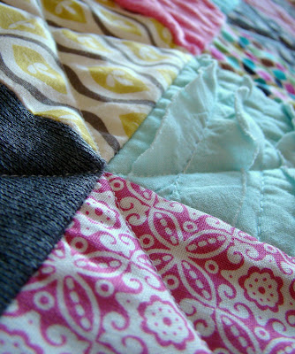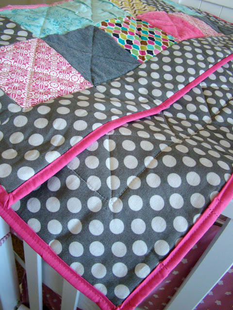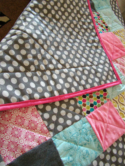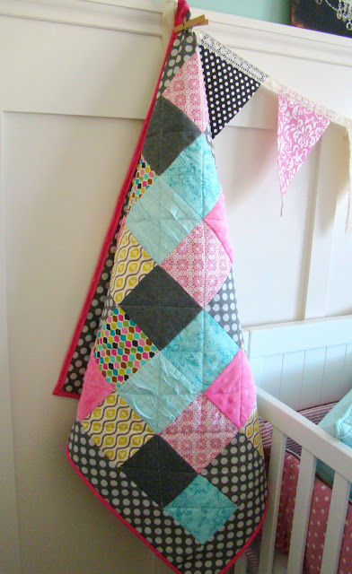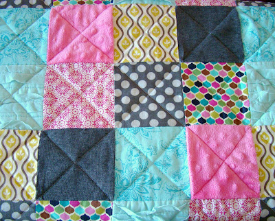 I probably should have prefaced this post by saying (and I know I've said it before...many times) I don't sew. Never have had a lesson (unless you count me sitting on my grandma's lap at the age of 7 'helping' her sew up a few pillowcases). I don't know the terms, don't know how to use a pattern, I'm really not quite sure if I even thread my sewing machine correctly...I'm totally winging it! But nevertheless. I don't think baby's even gonna notice. What she will remember (hopefully) is that the blanket that she dragged around for years and years when she was little was made with love...crooked lines and all.