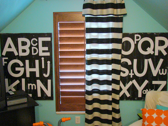 One of my favorite things in this room are my Ikea shelves. They are the perfect place to store lots of stuff and help keep things looking organized and clean. The big canvas storage bins work great to hide all the little nic-naks that need a place to be...they also are great to incorporate the colors of the room. I found these at Walmart and Target.